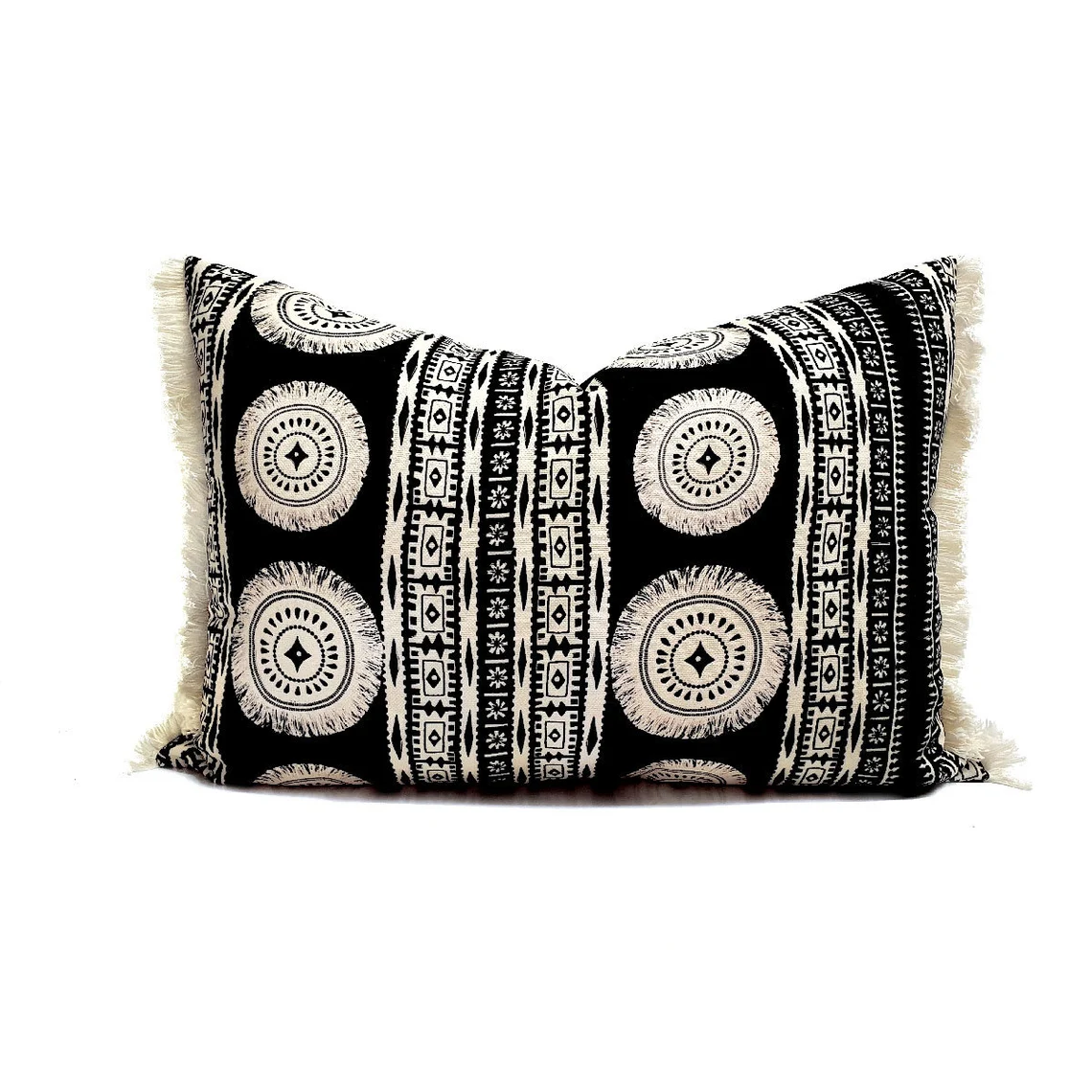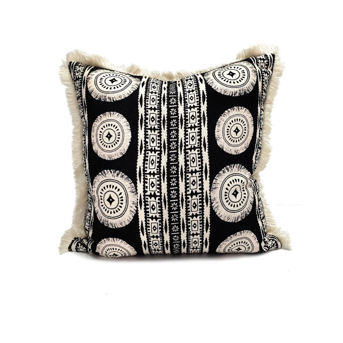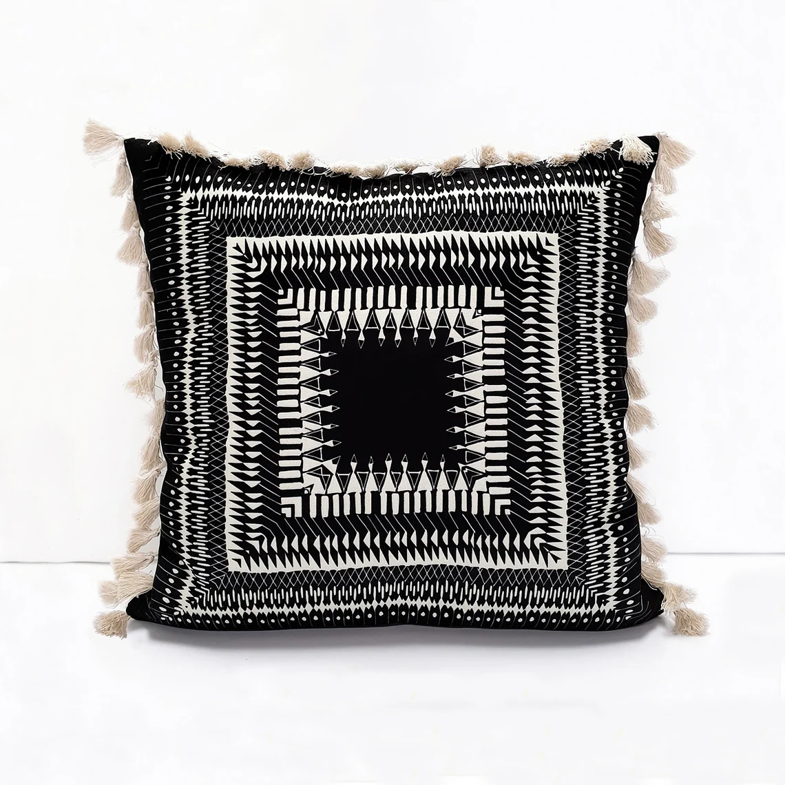 Boho Throw Pillow Cover Set – Home Decor Aztec, Tasseled, Southwestern Decor Pillows, Black Ivory Beige Aztec Throw Pillows, Accent Pillow