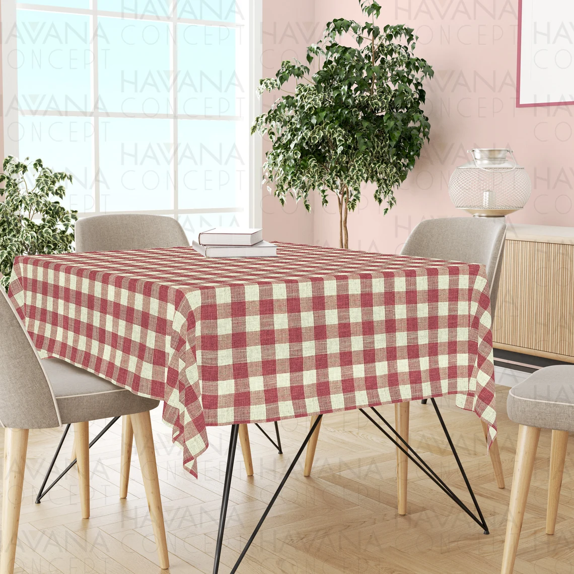 Brick Red Color Gingham Check Tablecloth, Buffalo Check Print Table Linens, Brick Red Beige Gingham Dining Table Cloth with Various Sizes