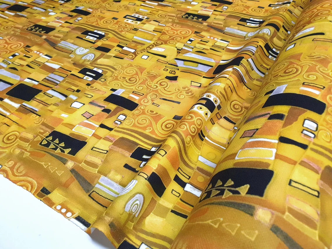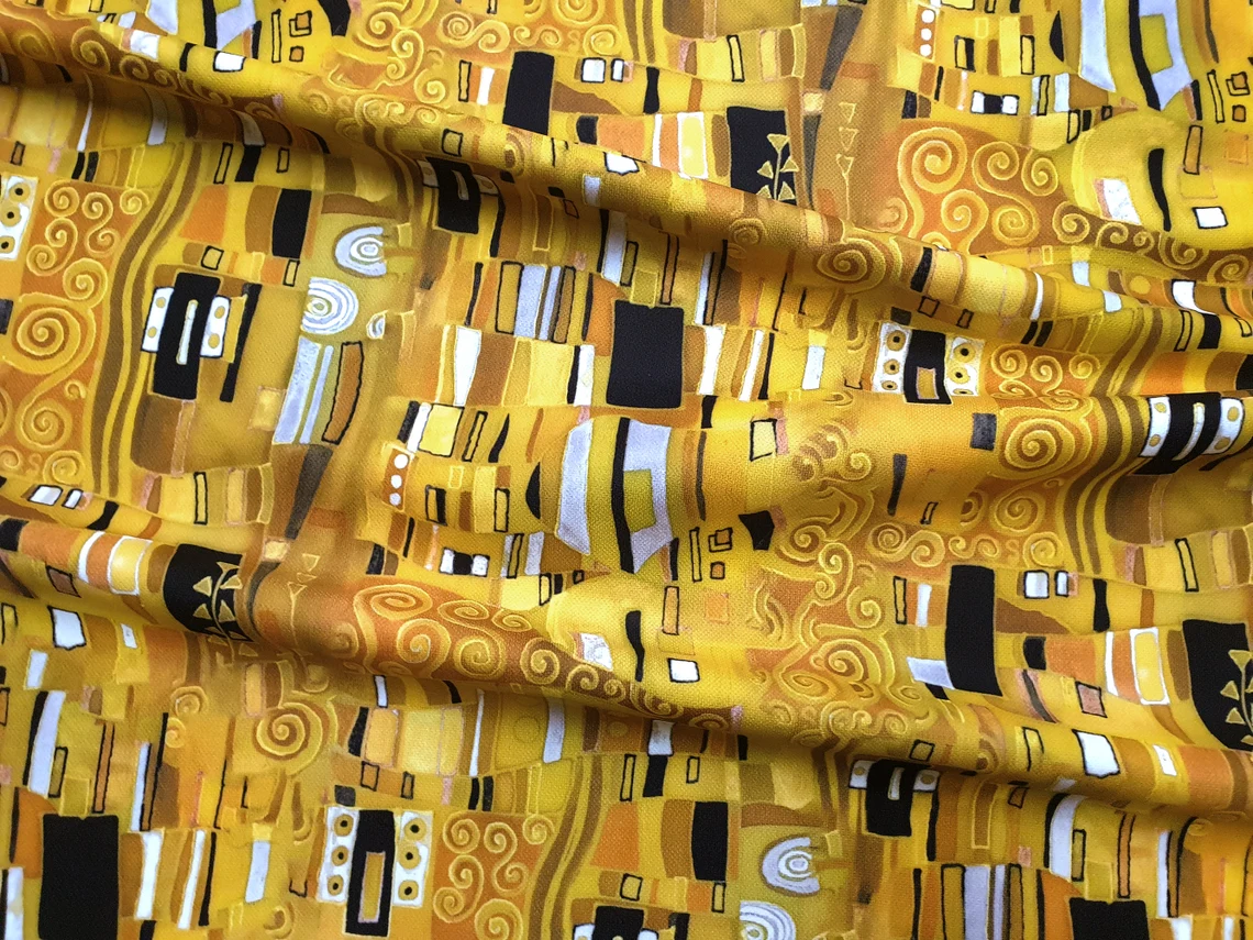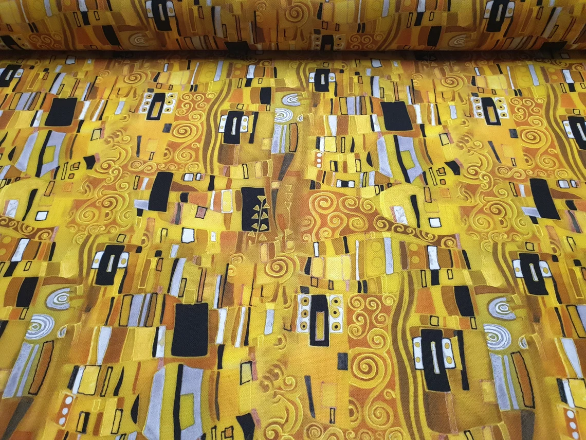 Gustav Klimt Der Kuss Stoff – Geometrischer Kunstdruckstoff – Möbelstoff als Meterware, Stoff für Vorhänge, Sofas, Stühle, Möbel