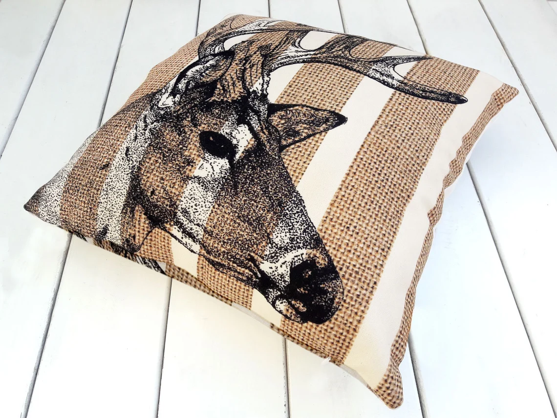Kissenbezug mit Streifen und Hirschmotiv
