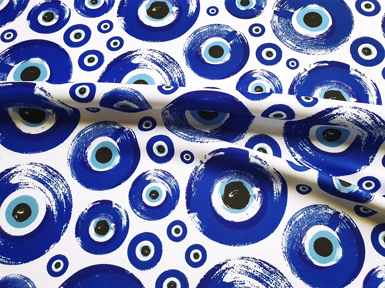 Blue Evil Eye Fabric – Blue Fabric by the Yard, Evil Eye Bead Fabric for Drapery, Tablecloth, Furniture, Sofa, Chair, Bag, Amulet Eyes Decor İdea