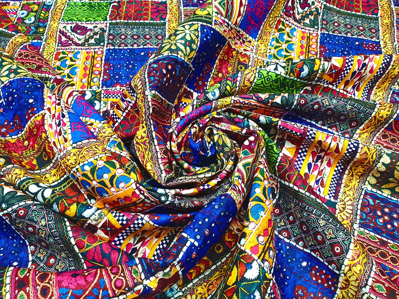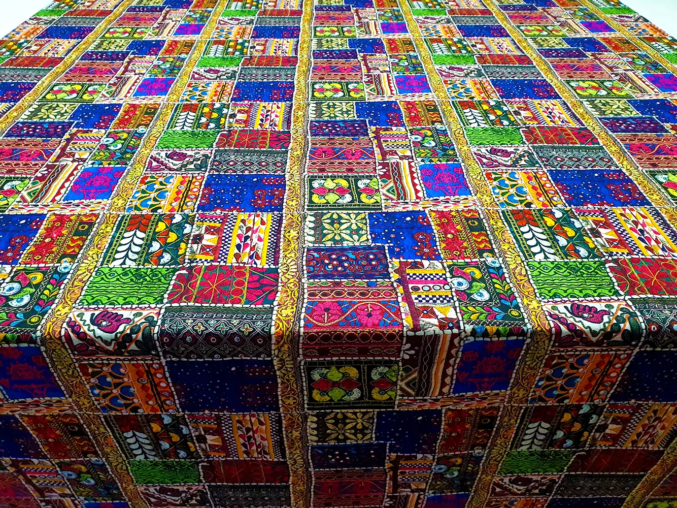 Colorful Patchwork Rug Print Fabric by the Yard – Ethnic Suzani Patchwork Digital Print Upholstery Fabric for Home Decor, Curtain, Furniture Upholstery