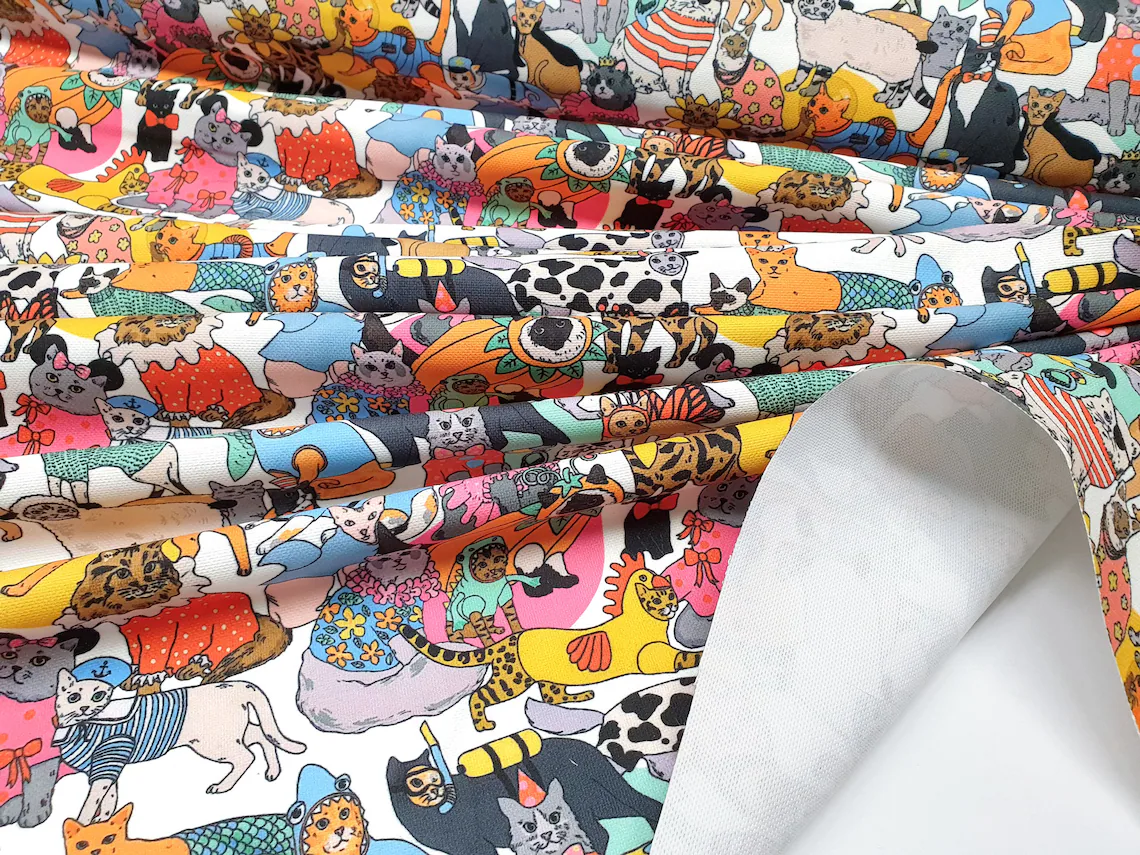 Cute Colorful Costumed Cats Fabric by the Yard – Colorful Sweet Cats with Costumes Print Fabric for Home Decor, Curtains, Pillows, Furniture Upholstery Fabric