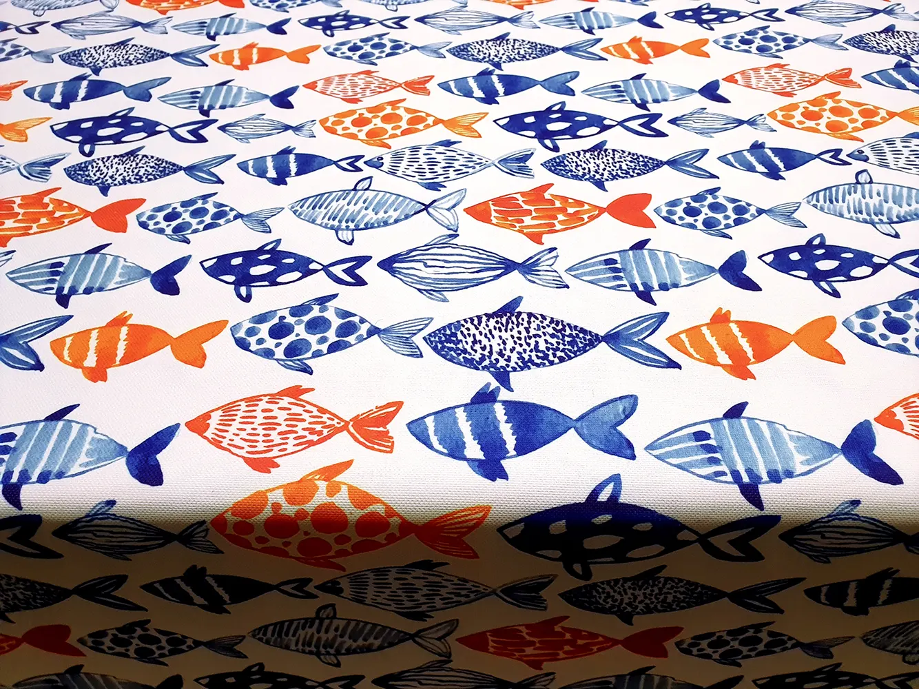 Hand Drawn Watercolor Fish Fabric by the Yard – Nautical Blue Orange Oil Paint Fish Print Fabric for Home Decor, Curtains, Chair, Furniture Upholstery