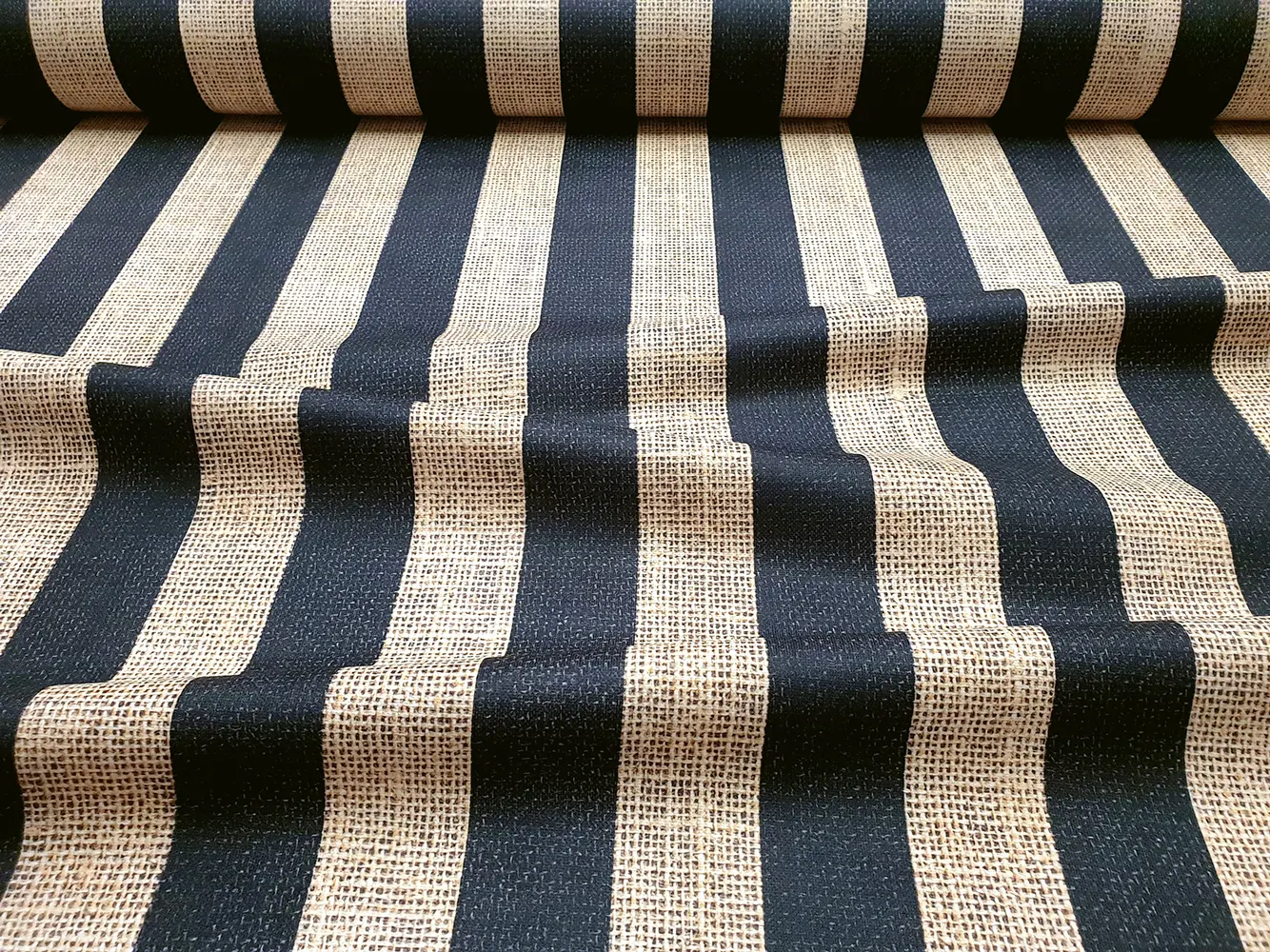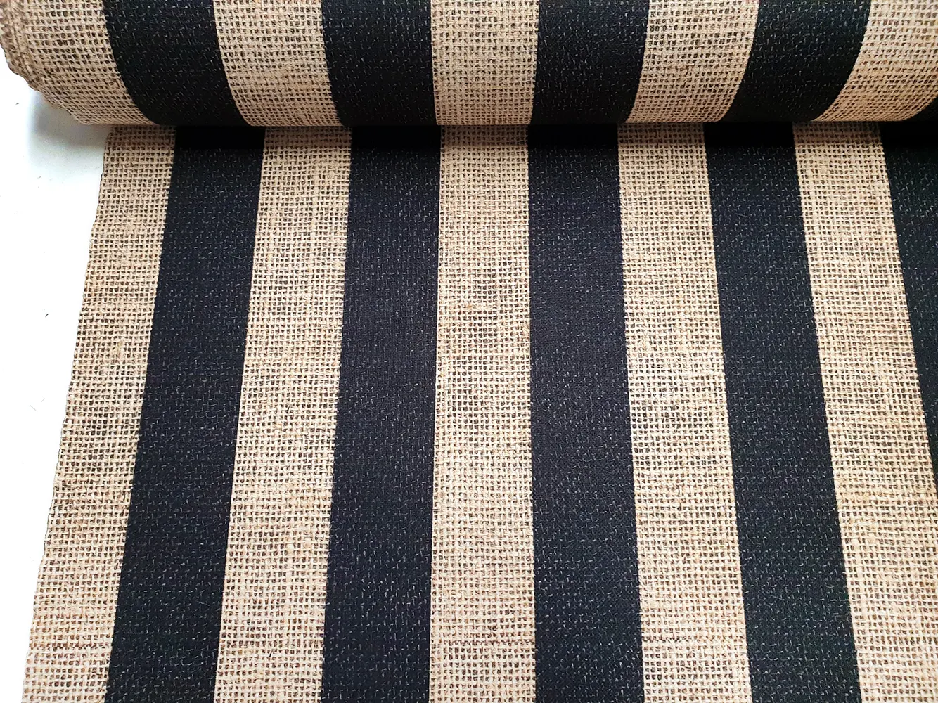 Jute Look Black Stripe Print Fabric by the yard – Jute Look Striped Print Fabric for Home Decor, Seat, Chair, Sofa Upholstery