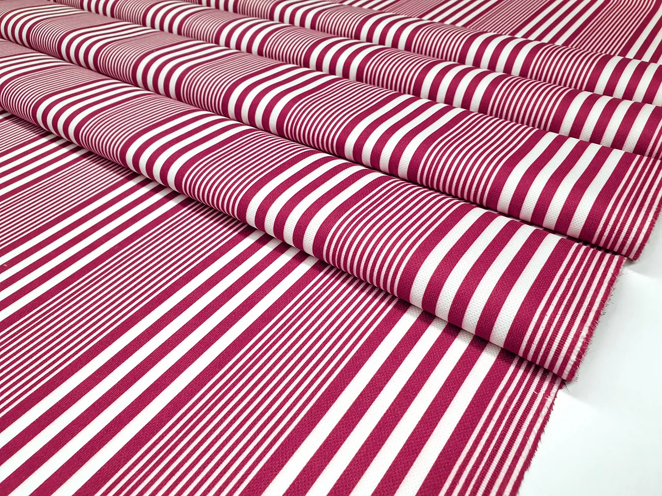 Maroon White Striped Fabric by the Yard – For Home Decor Curtain, Pillow, Cushion – Chair Sofa Bench Furnishing Fabric