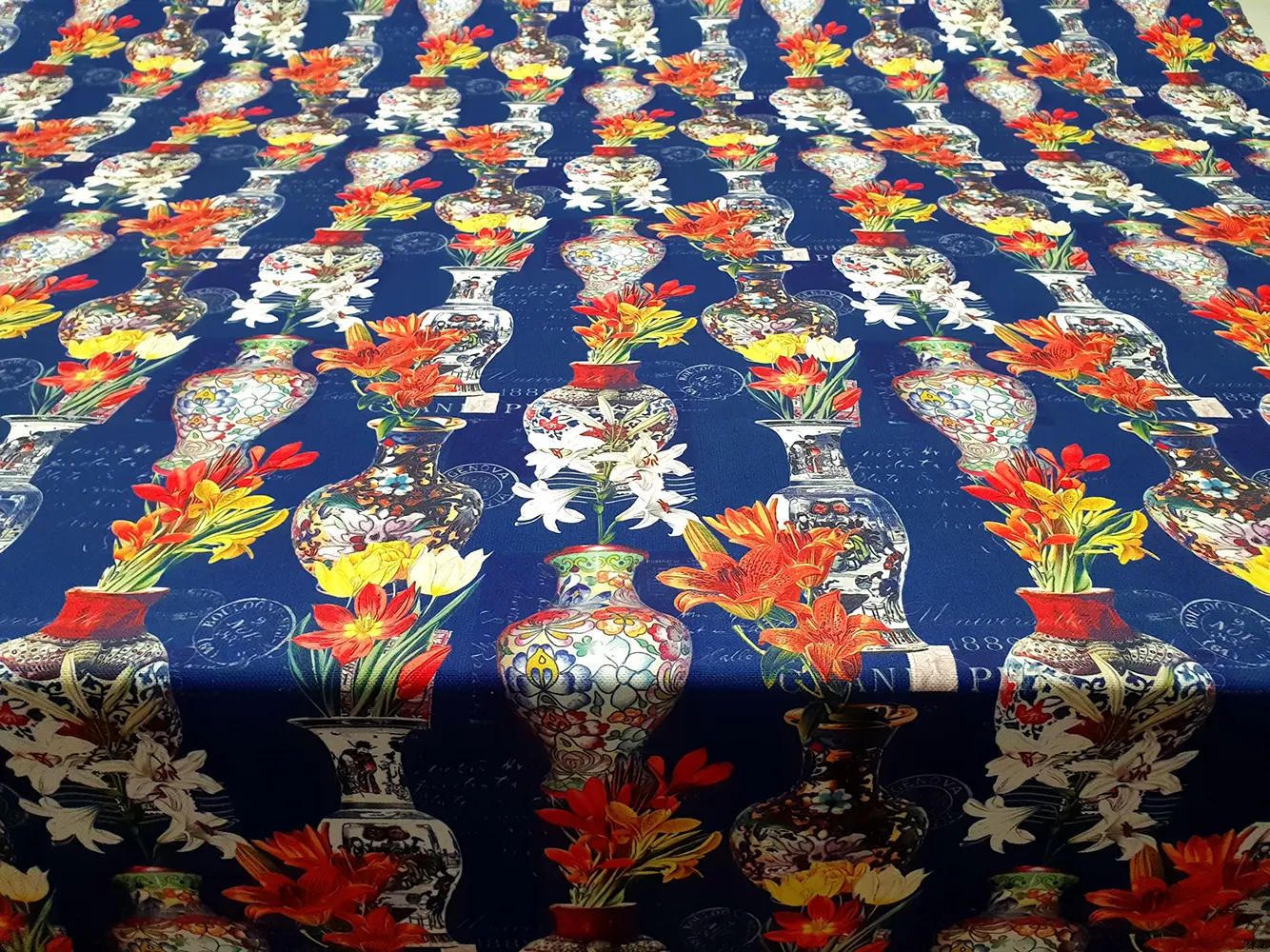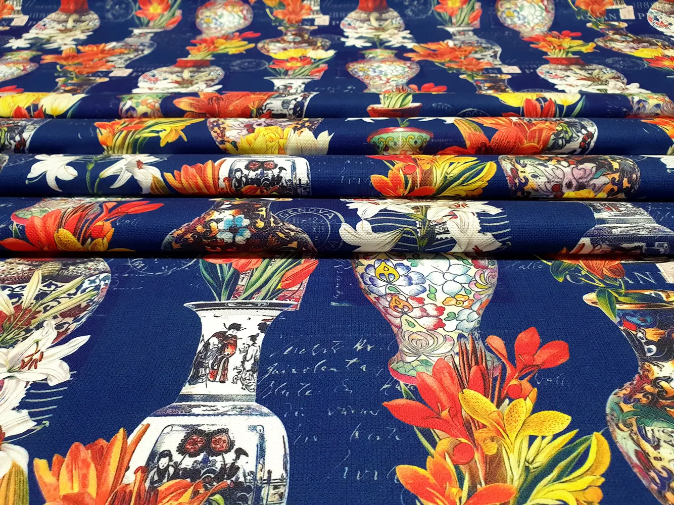 Chinoiserie Vases Adorned With Flowers Fabric