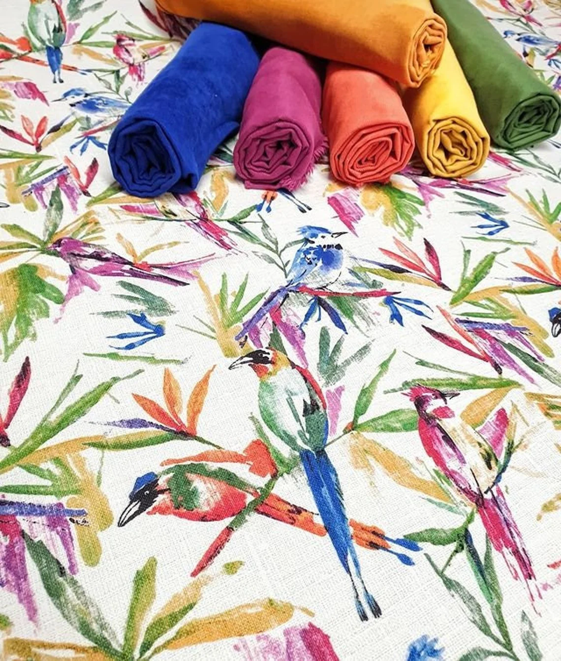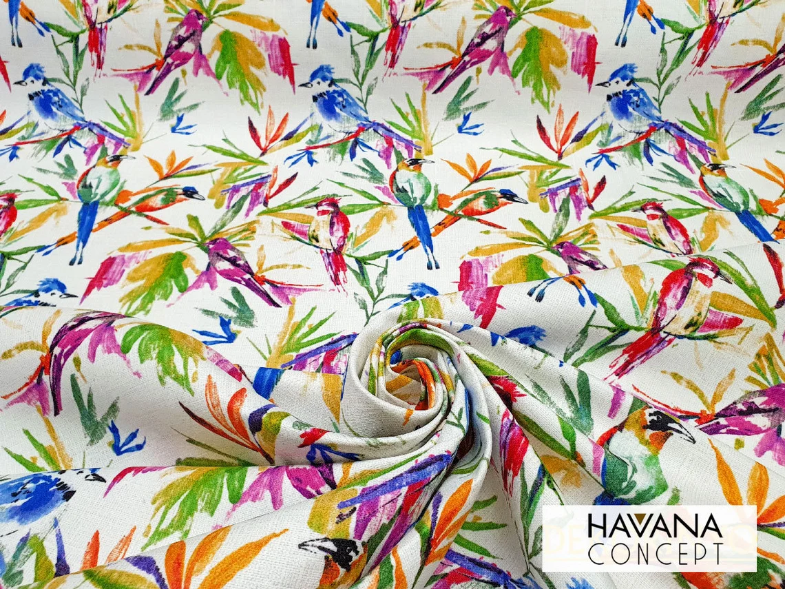 Watercolor Birds of Paradise Fabric by the Yard – Upholstery and Drapery Fabric – Home Decor Pillow Fabric, Furnishing Fabric