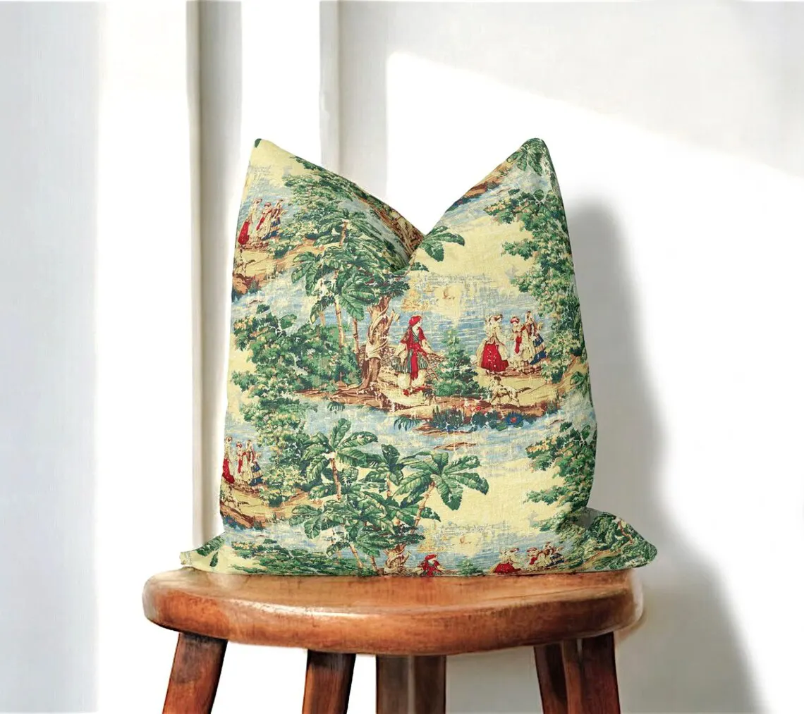 Antique French Toile de Jouy Pillow Cover