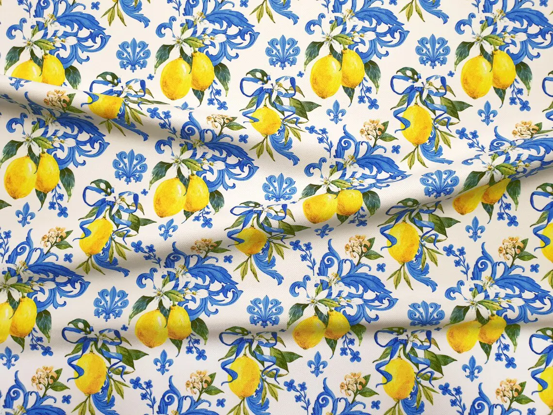 Damask and Lemon Pattern Upholstery Drapery Multi-Purpose Digital Printed Fabric by the Meter