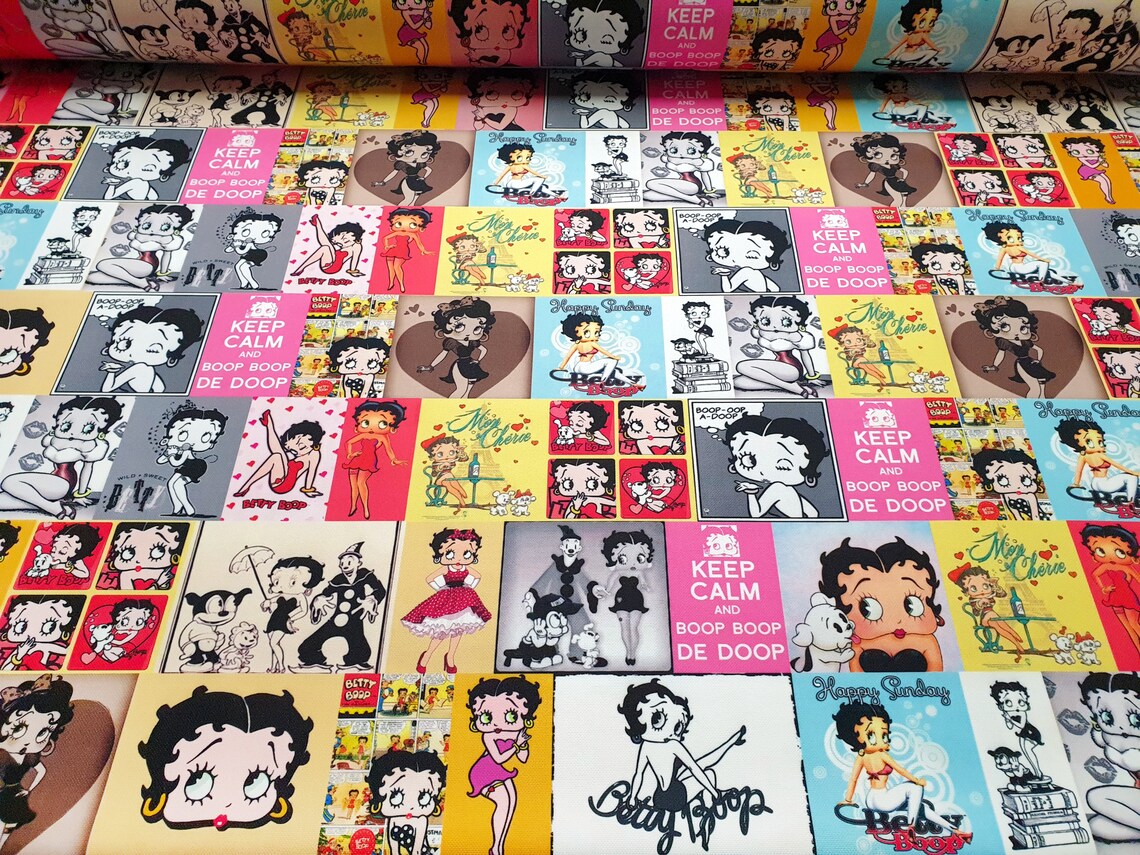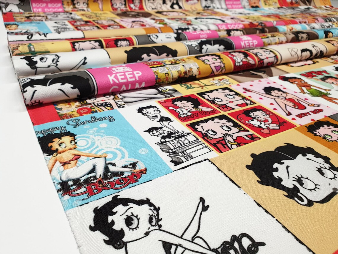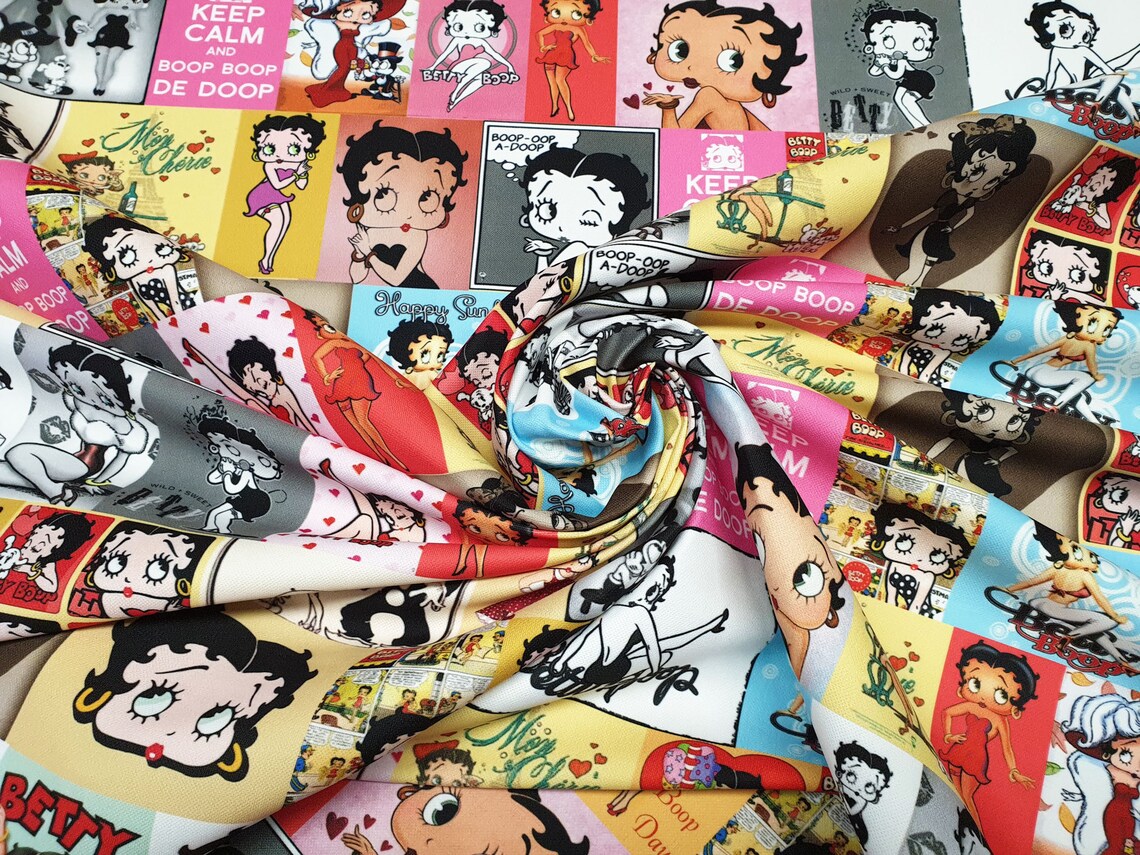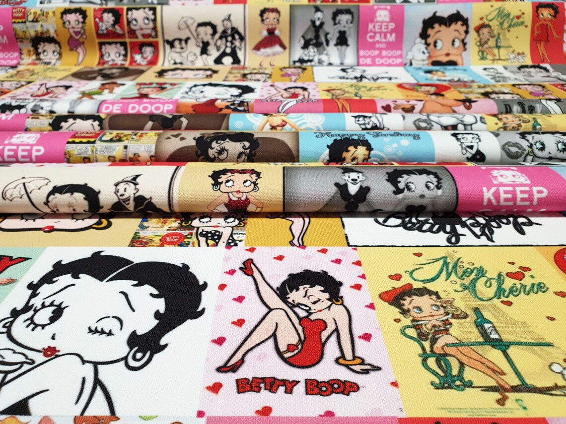 Betty Boop Fabric by the Yard – 1930s Retro Vintage Comic Cartoon Upholstery, Drapery, Digital Printed Fabric by the Yard