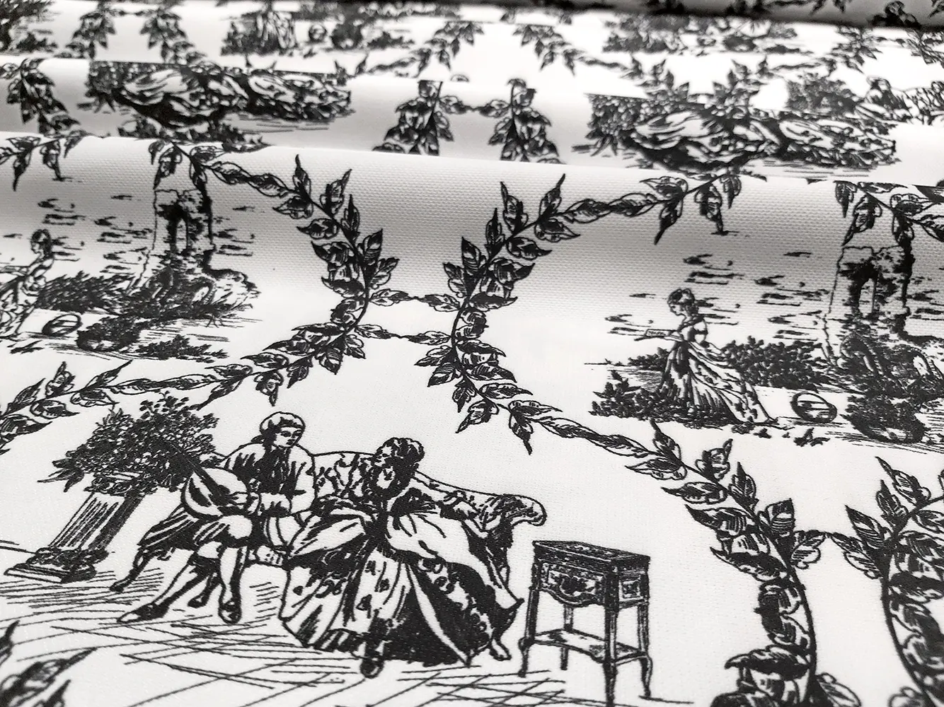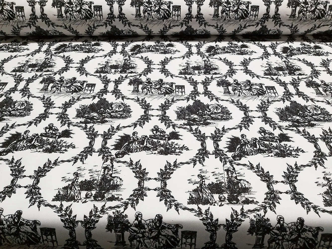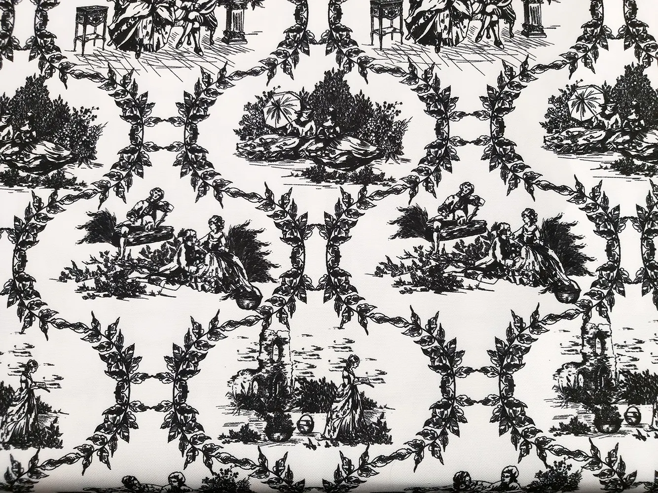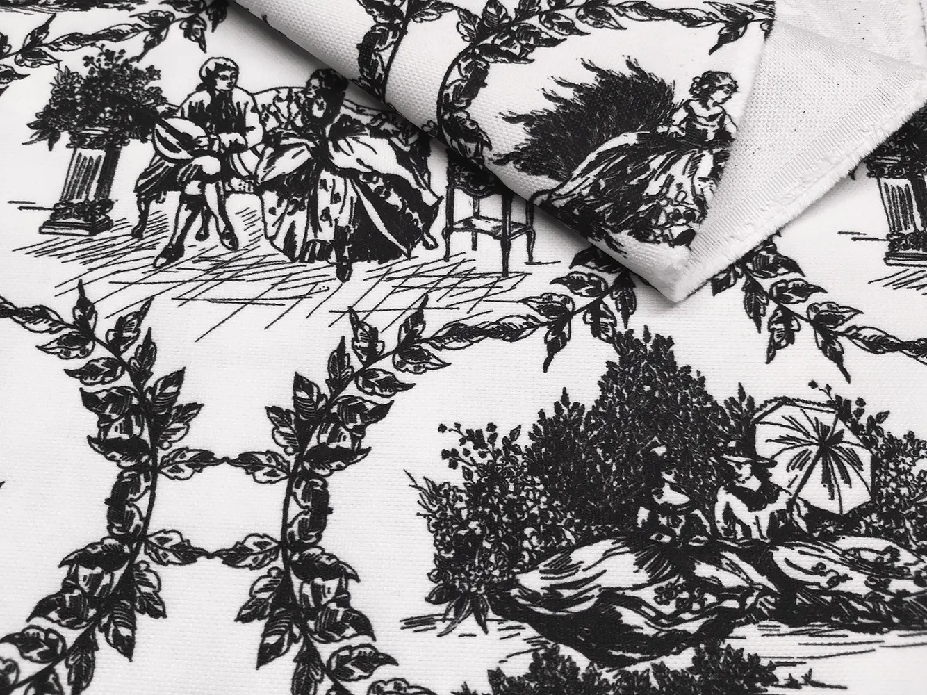 Black and White Toile de Jouy Fabric by the yard – French Pastoral Garden Print fabric, Toile Romance in the Garden Print Upholstery fabric