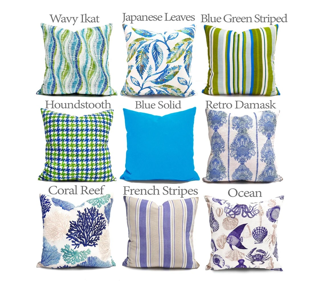 Blue Green Nautical Throw Pillow Cover Set – Coastal Home Decor Pillow Case, Blue and Green Summer Pillow Covers, Blue Throw Pillows, Nautical Pillow Covers
