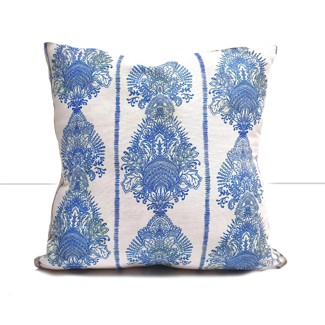 The zipper of the pillowcase is at its base. For sizes up to 50 cm (20″) wide, the zipper is sewn invisibly.