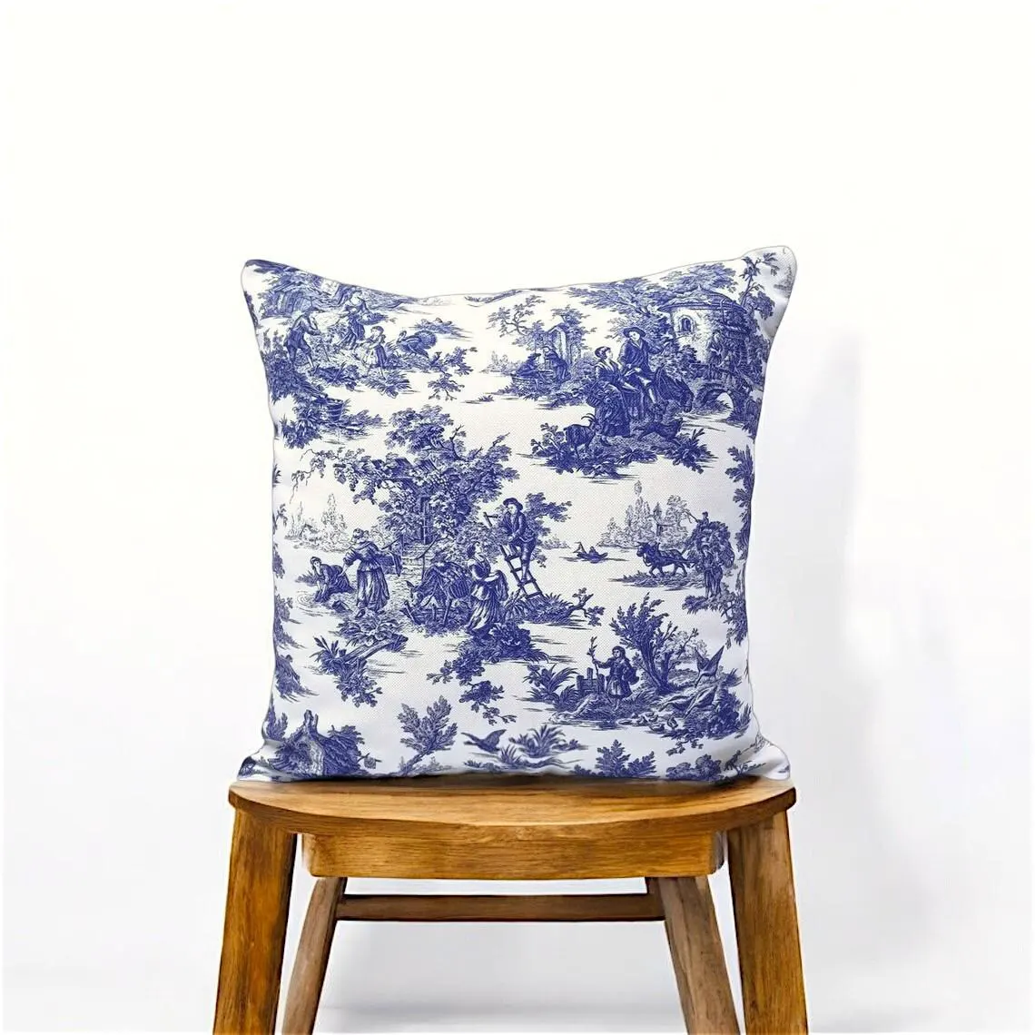 Blue Toile de Jouy Pillow Cover