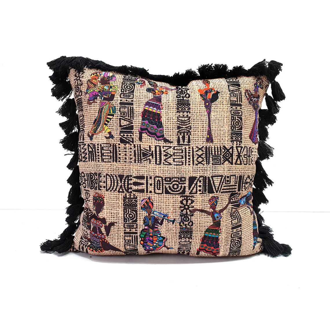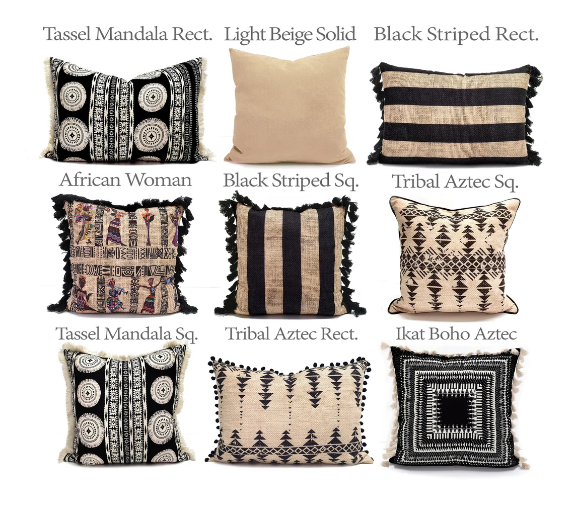 Boho Throw Pillow Cover Set – Home Decor Aztec, Tasseled, Southwestern Decor Pillows, Black Ivory Beige Aztec Throw Pillows, Accent Pillow