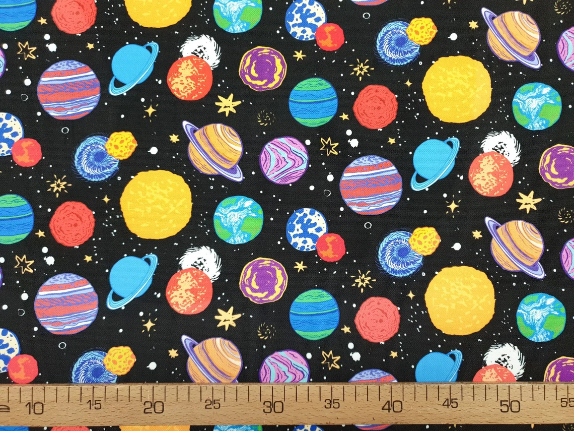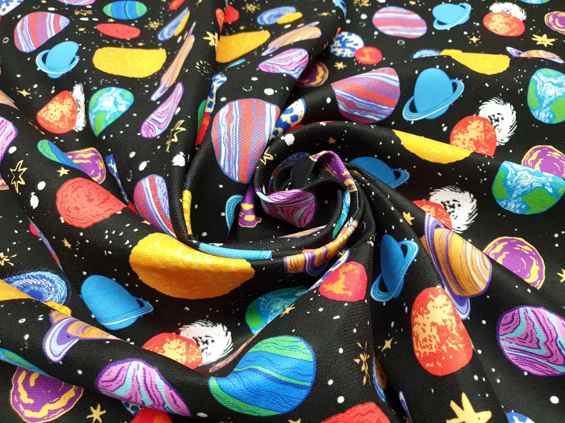 Colorful Planets and Stars Fabric by the Yard – Galaxy Nebula Stars Sun Saturn Universe Solar System Stellar Cosmos Print Upholstery Fabric