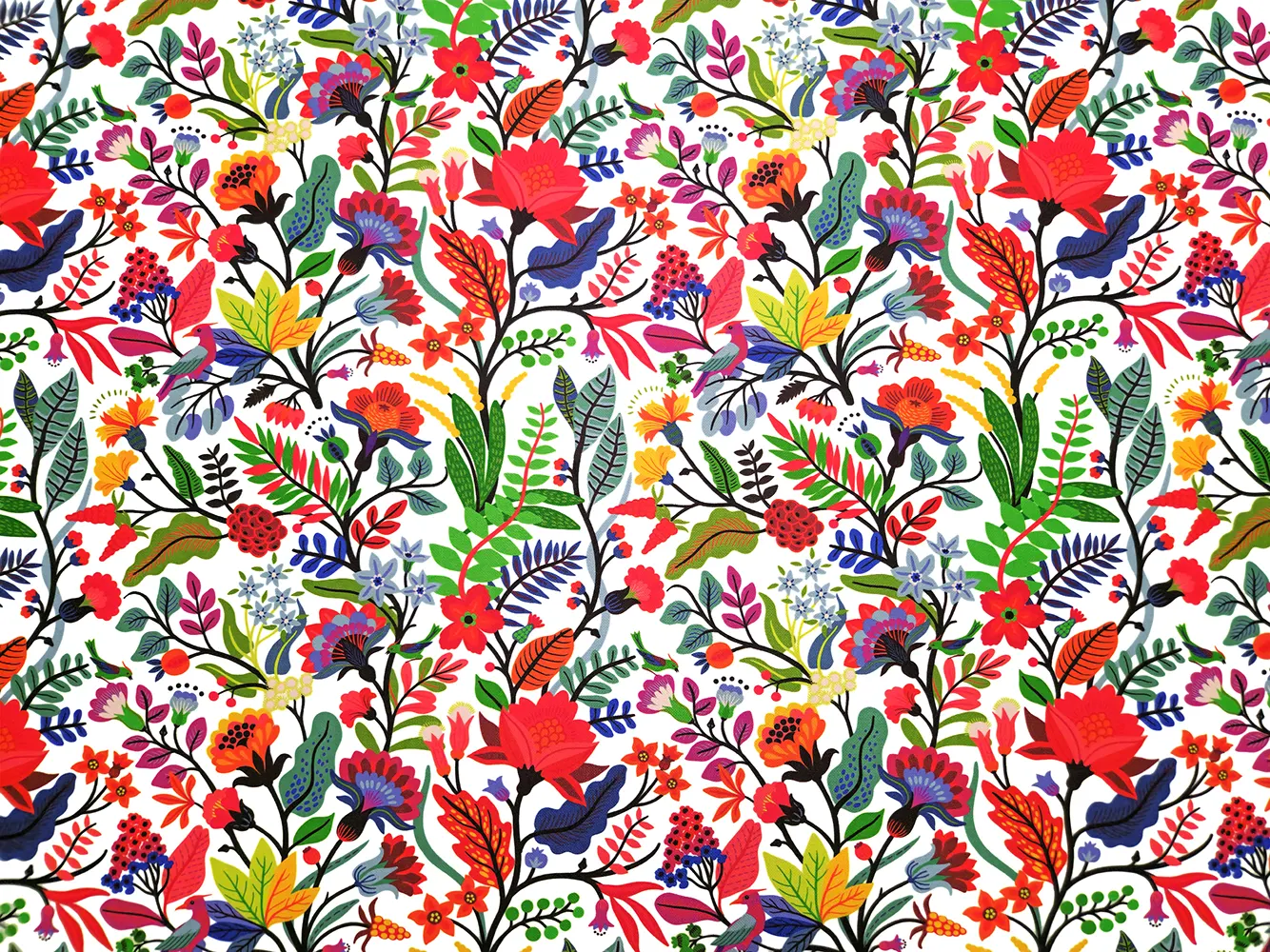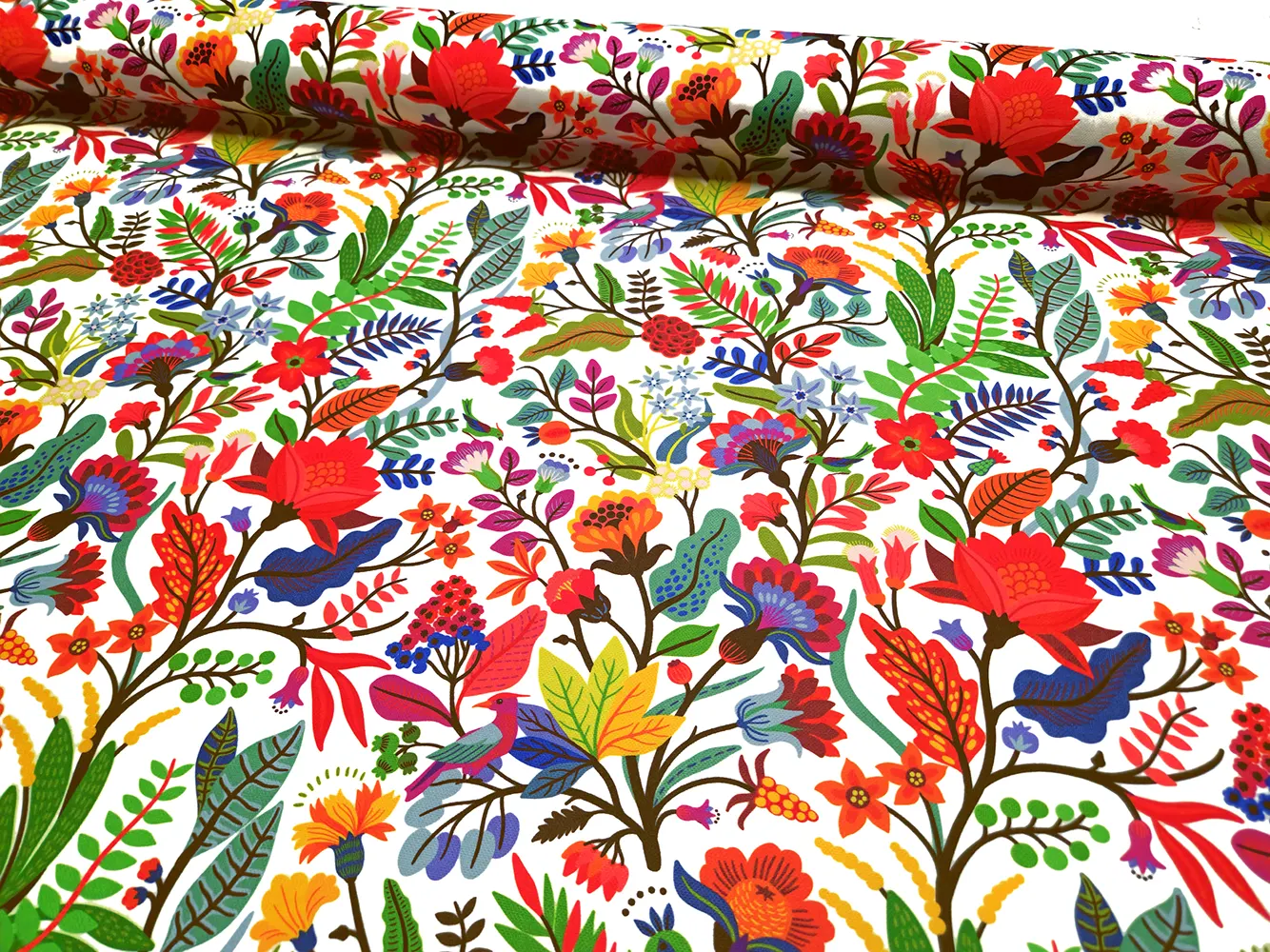 Colorful Vibrant Polish Floral Fabric – Mexican Flowers Print, Vibrant Abstract Flowers, Bright Colorful Fabric by the Yard