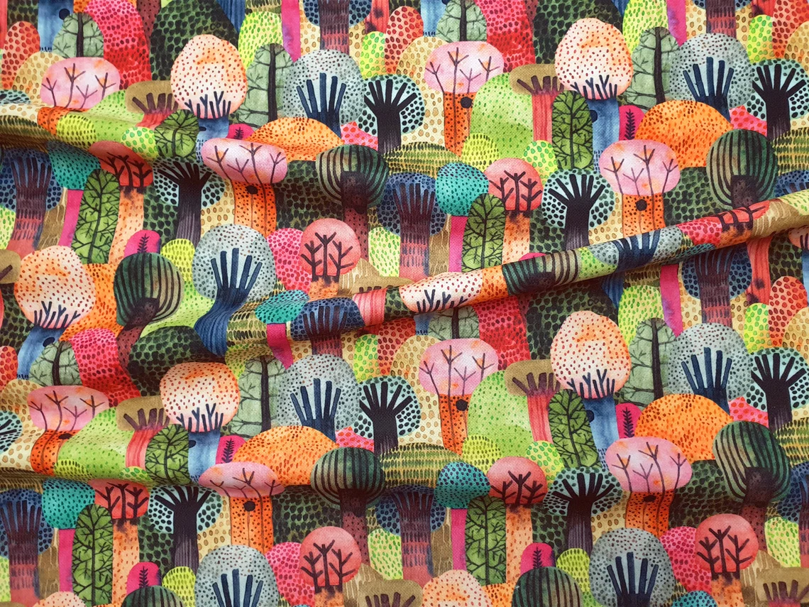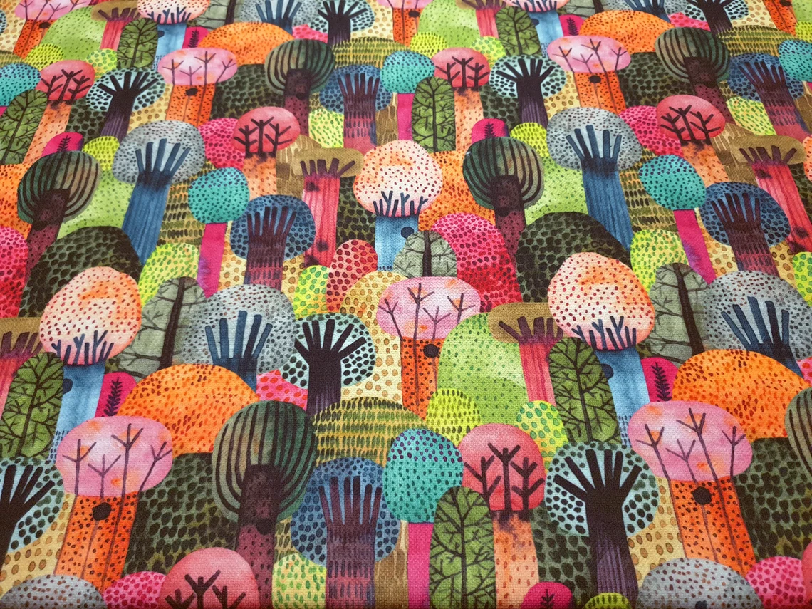 Colorful Watercolor Forest Fabric – Watercolor Trees Abstract Art Fabric, Home Decor Fabric Furnishing, Cartoon Fabric by The Yard