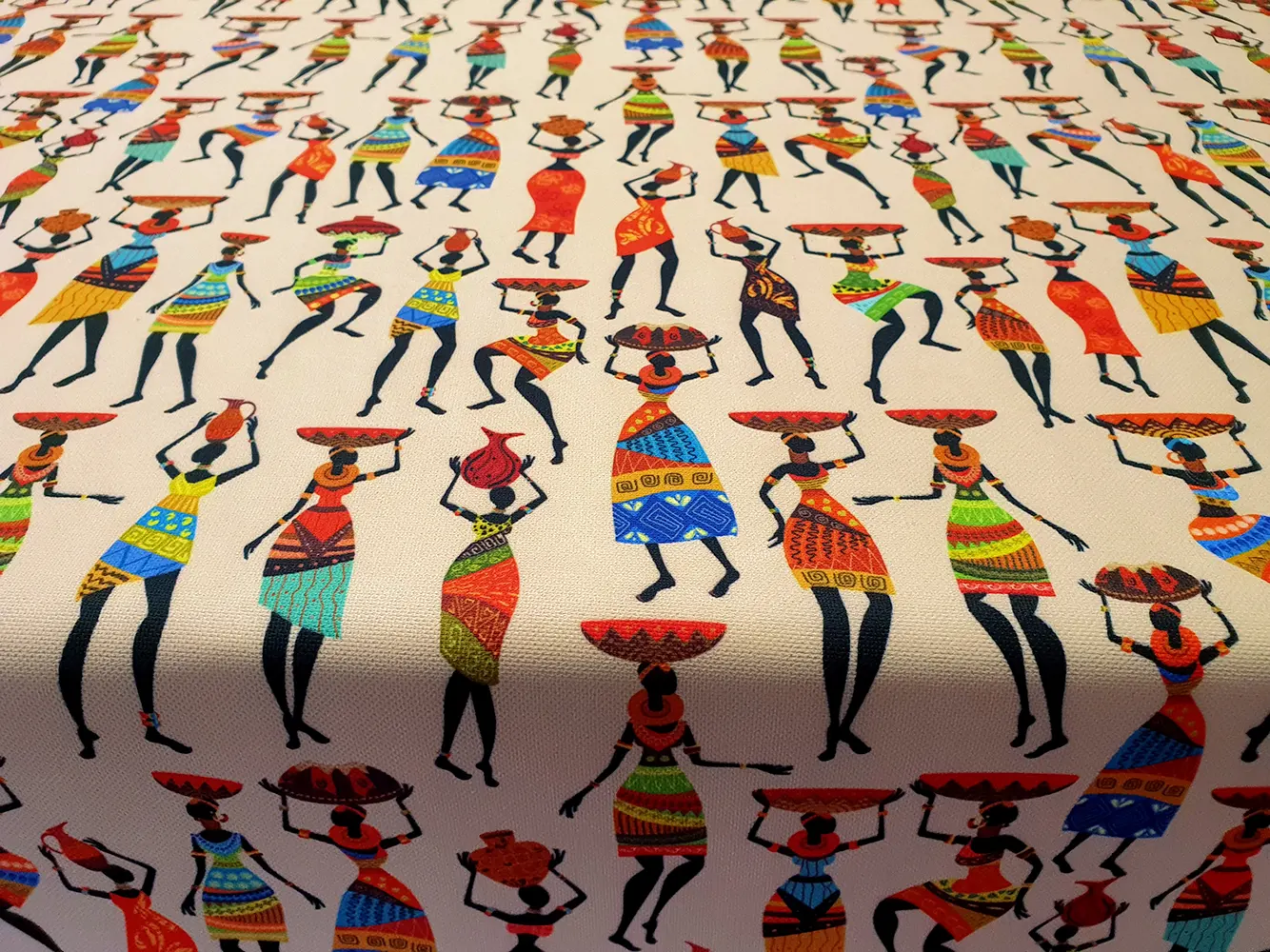 Dancing African Women Print Fabric – Dancing African Women Fabric by the Yard – Kenian African Ladies Baskets Upholstery Fabric