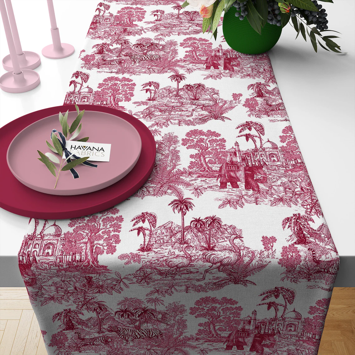 Maroon Indian Toile Table Runner