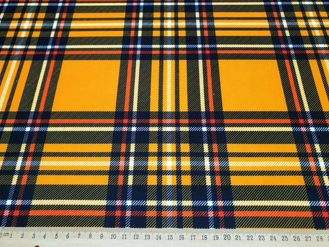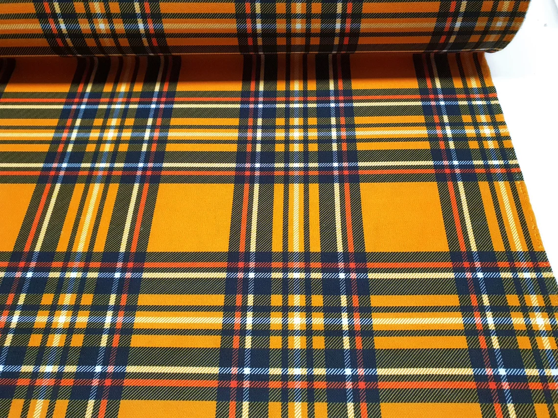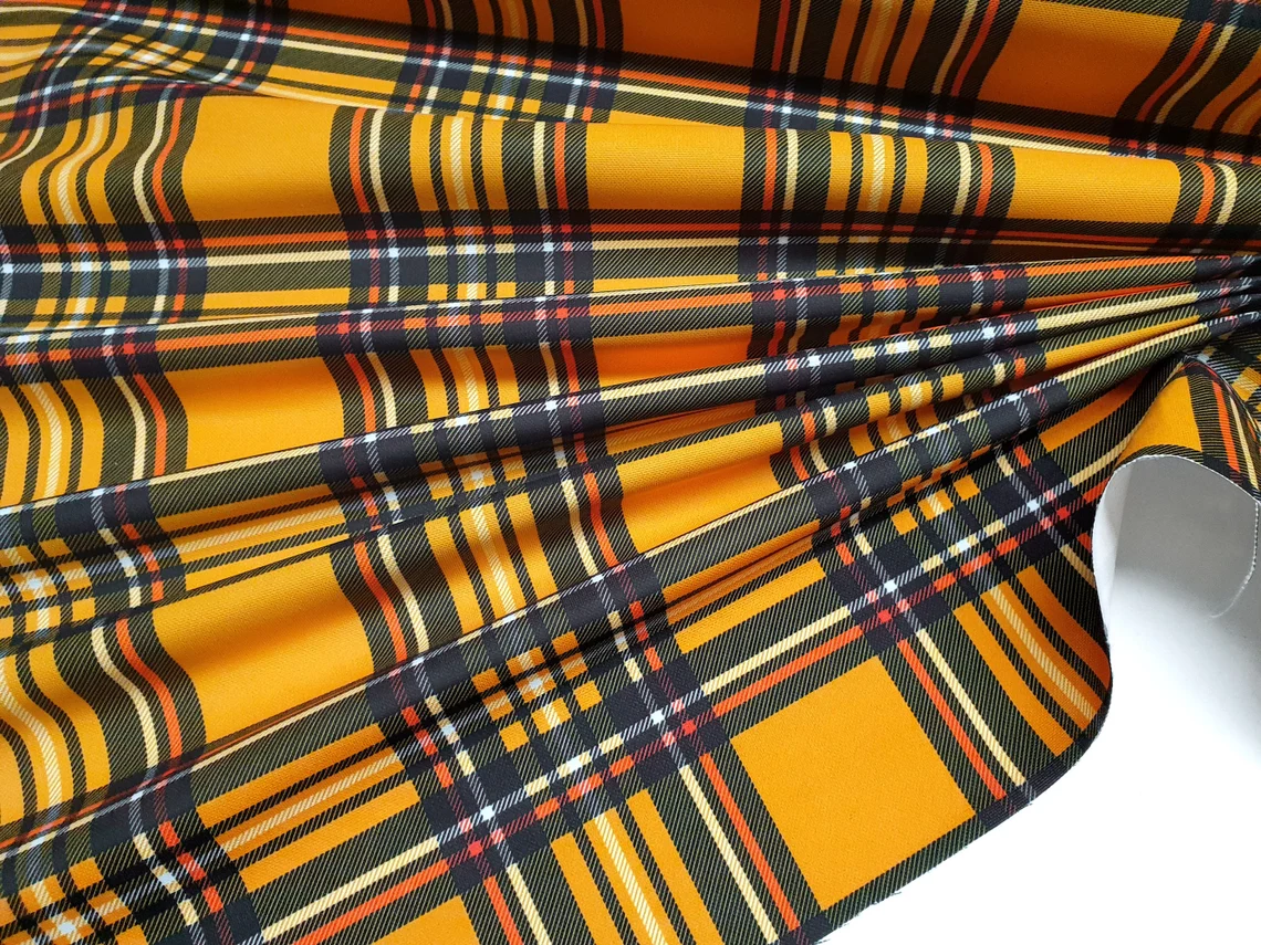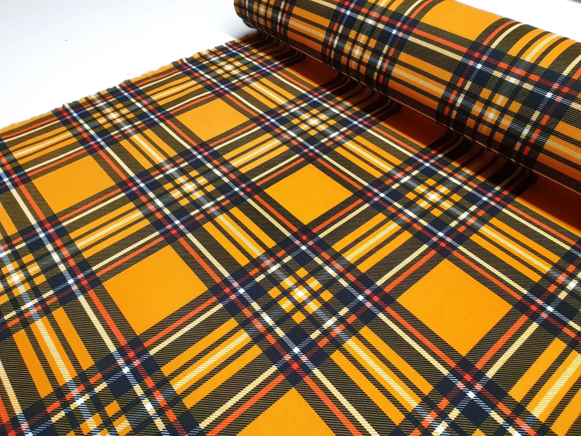 Orange Plaid Tartan Fabric by the Yard – Black, White, Red Lines Tartan Print Fabric for Home Decor, Drapery, Sofa, Furniture Upholstery
