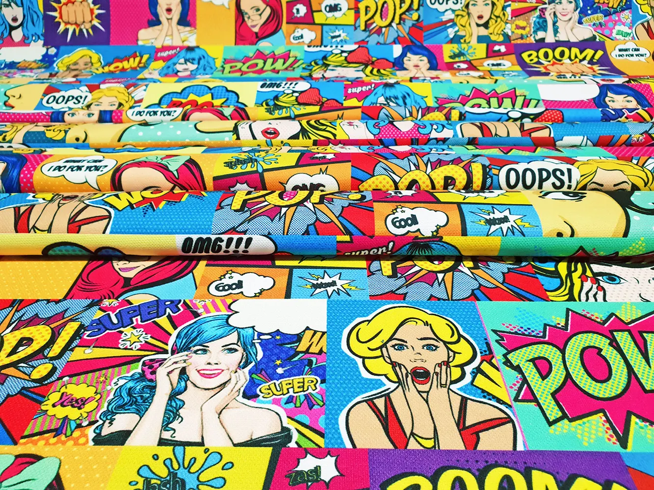 Pop Art Comic Book Fabric by the yard – Colorful Retro Comic Print Home Decor Upholstery Drapery Multi-Purpose Digital Print Fabric