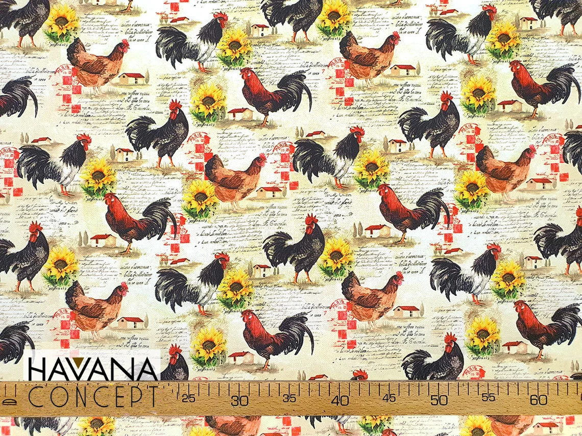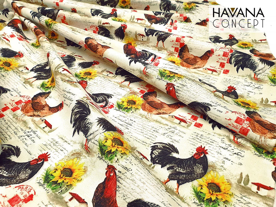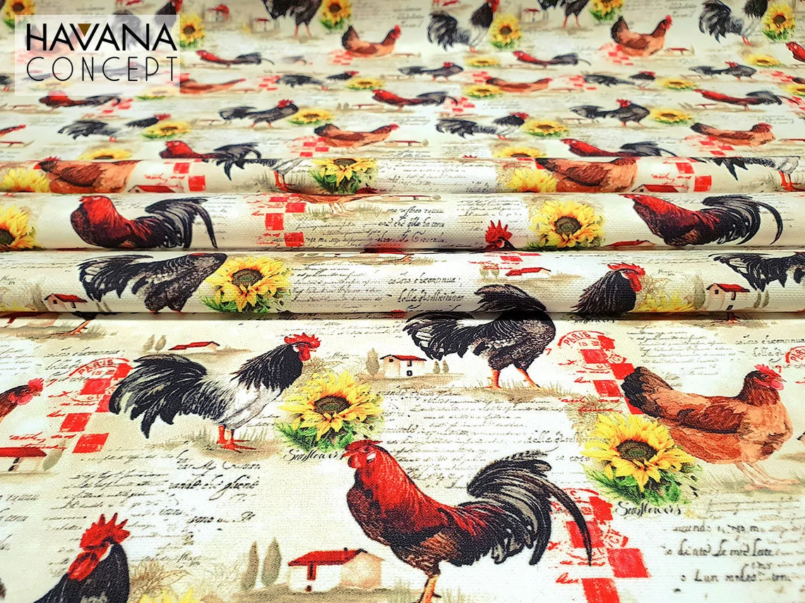 Rooster Chicken Farm Fabric by the yard – Home Decor, Sofa, Bench, Chair Upholstery, Drapery Fabric