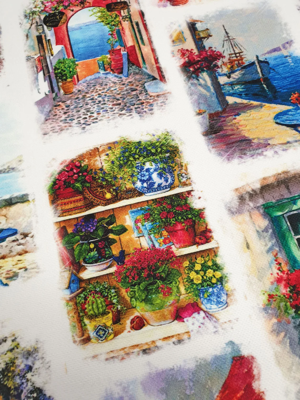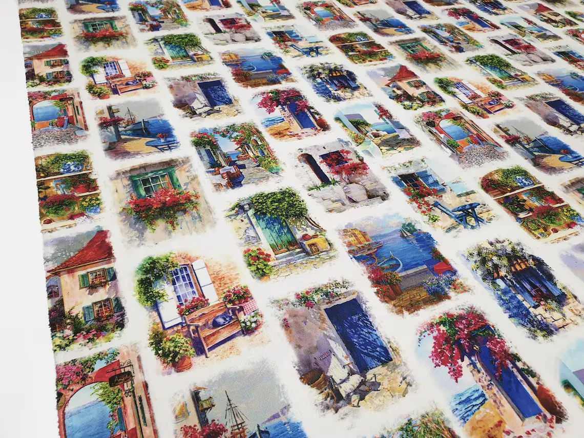 Sicilian Windows Mediterranean Doors Fabric by the Yard. Nature Landscapes Digital Print Fabric for Upholstery, Curtain, Pillow, Bags/Handbags