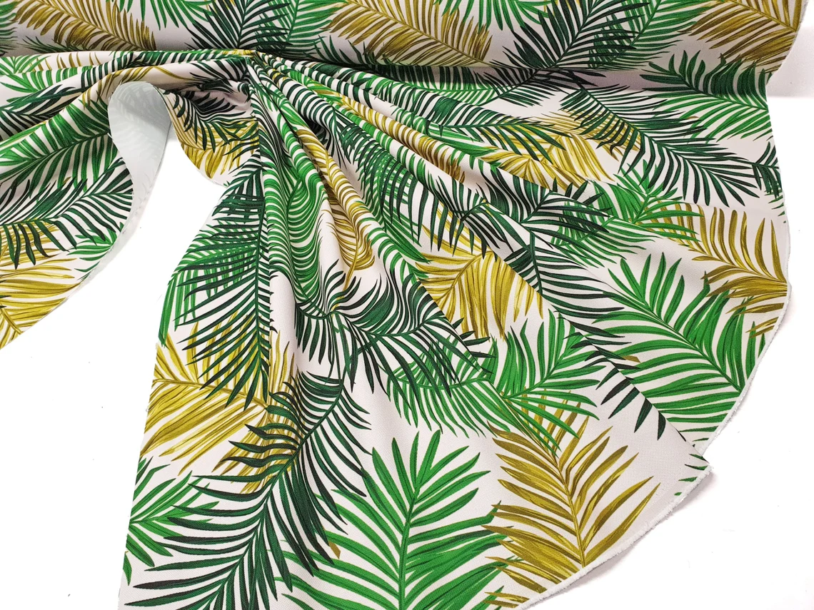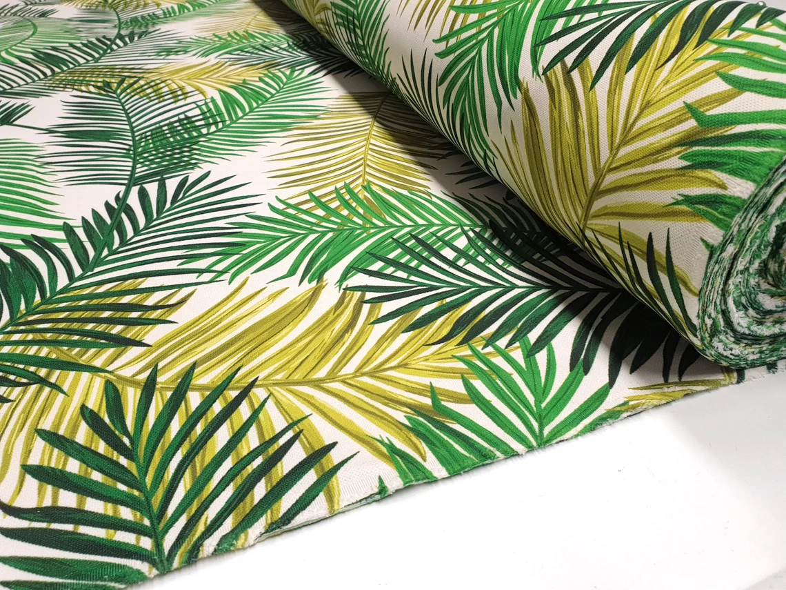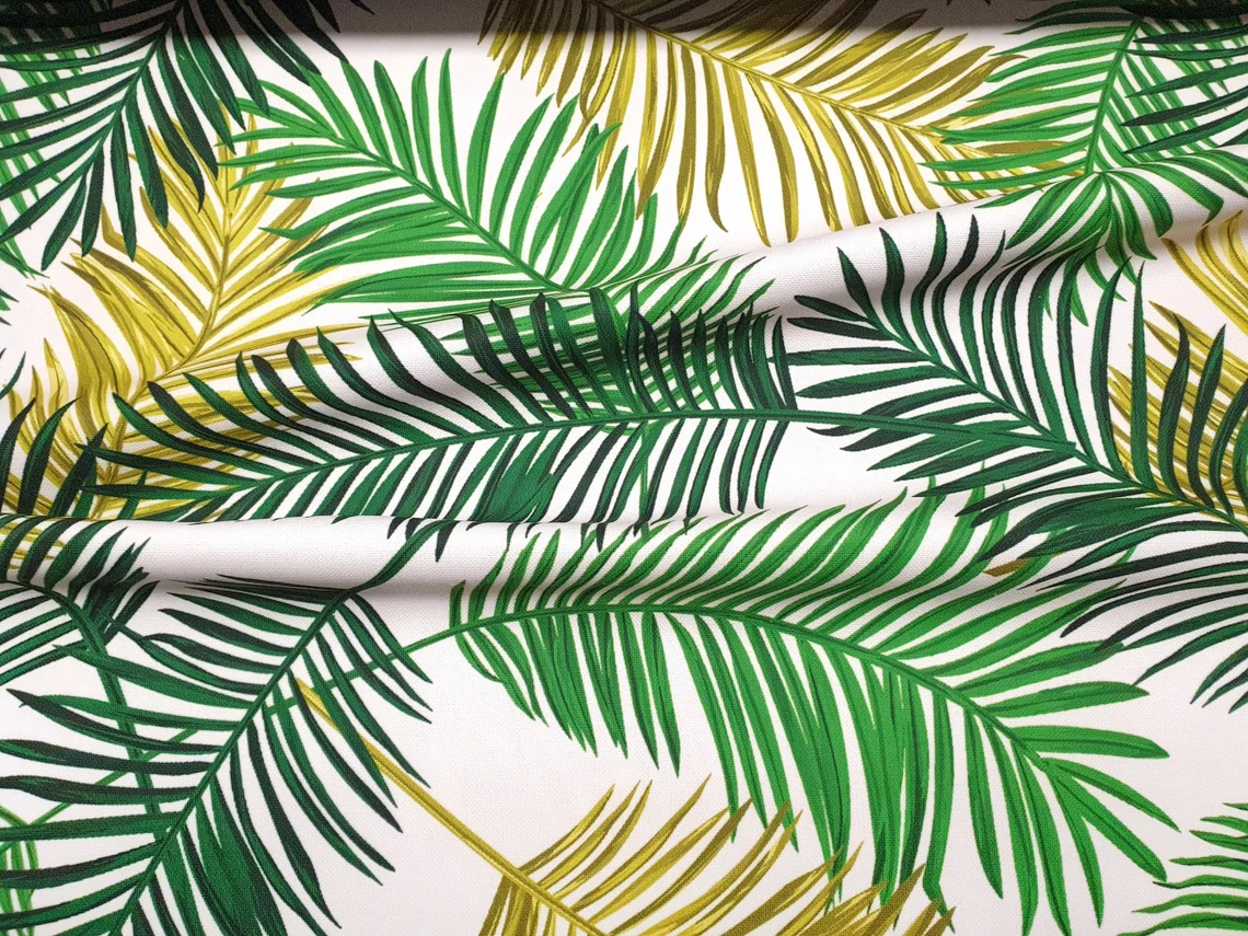 Tropical Palm Leaves Fabric – Green and Yellow Leaves on Beige – For Home Decor, Curtain – Upholstery Fabric by the Yard or Select Length