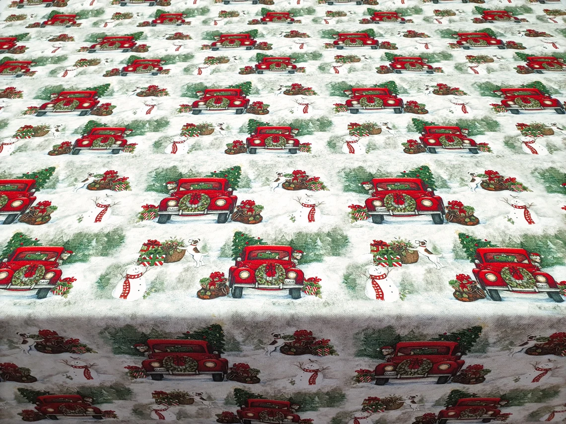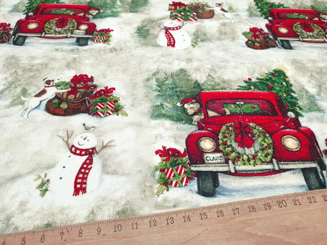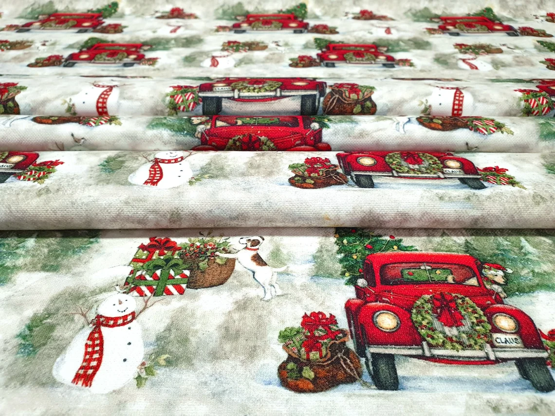 Trucks and Christmas Trees Fabric by the Yard – Snowman Truck Fabric for Home Decor, Pillow, Curtain, Bench, Sofa, Furniture Upholstery