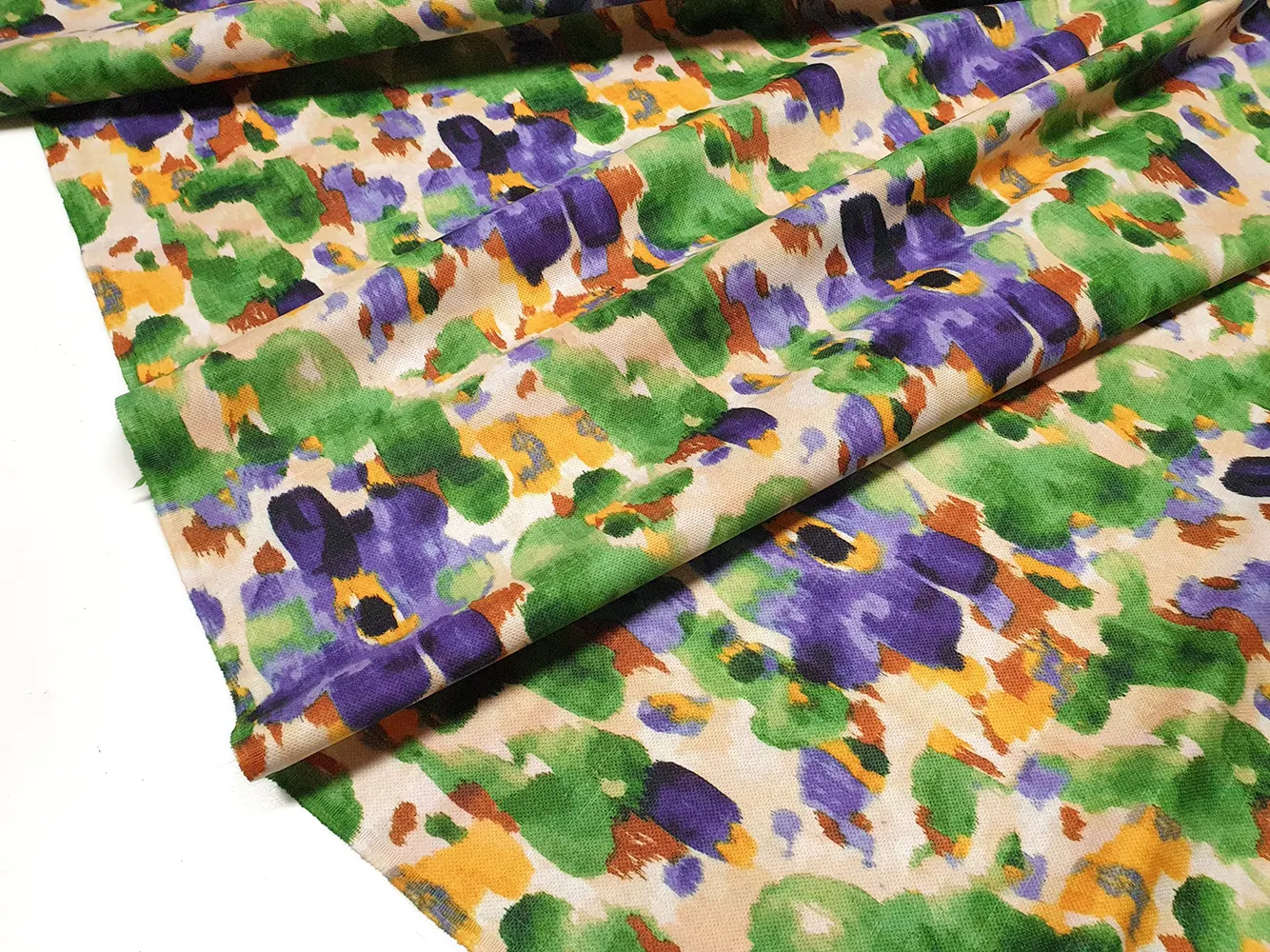 Watercolor Floral Batik Fabric – Mono Tone Green Yellow Purple Floral Upholstery Fabric, Soft Watercolor Splash Flowers Fabric by the Yard