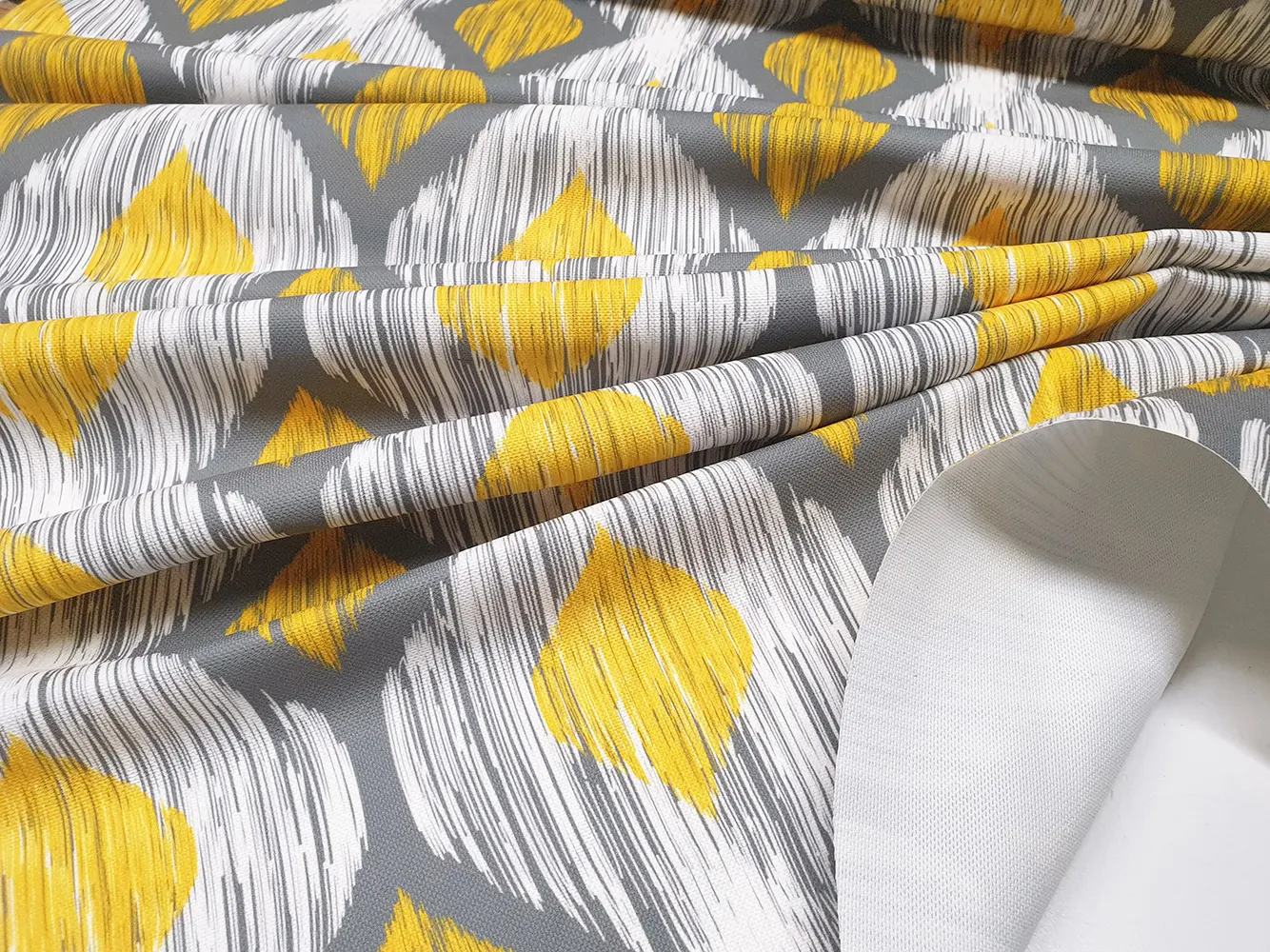 Yellow Grey Ikat Fabric – Bohemian Ikat Print Fabric for Home Decor Curtain, Pillow, Furniture Upholstery Fabric by the Yard
